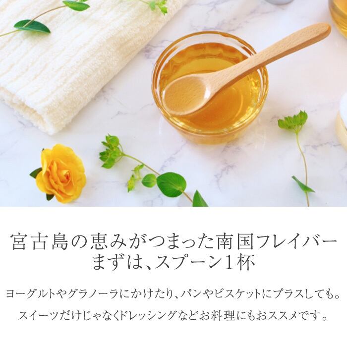 宮古島の大自然で育まれた植物から採取された蜜は、風味が豊かで甘さのバランスも抜群です。熱処理を行わず、自然の恵みをそのまま瓶詰めしているため、酵素や栄養素が豊富に含まれています。これにより、健康志向の方にもぴったりの商品です。