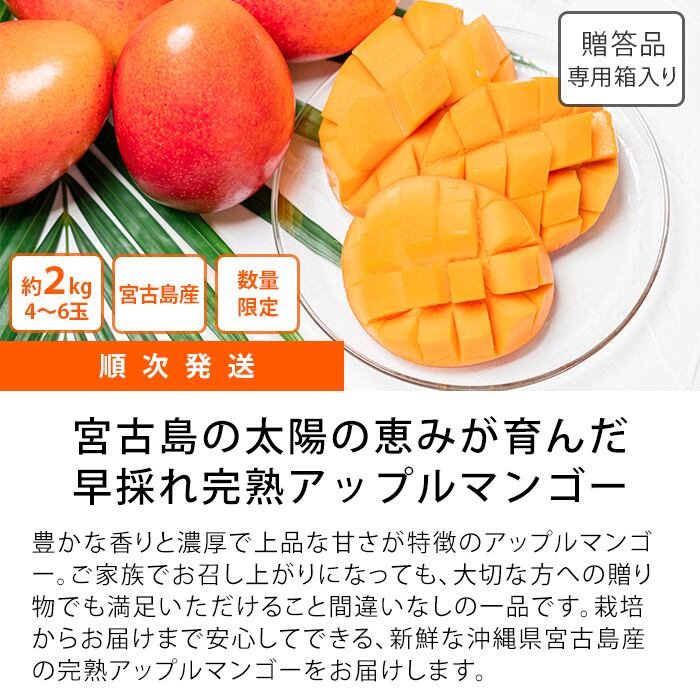 【7月より順次発送】【贈答用】マンゴー アップルマンゴー 完熟マンゴー 高級マンゴー 沖縄 宮古島(伊良部島) 下里果樹園 農家直送 糖度13度以上 SDGs【産地直送 宮古島産 贈答用 アップルマンゴー 2kg(4~6個)】